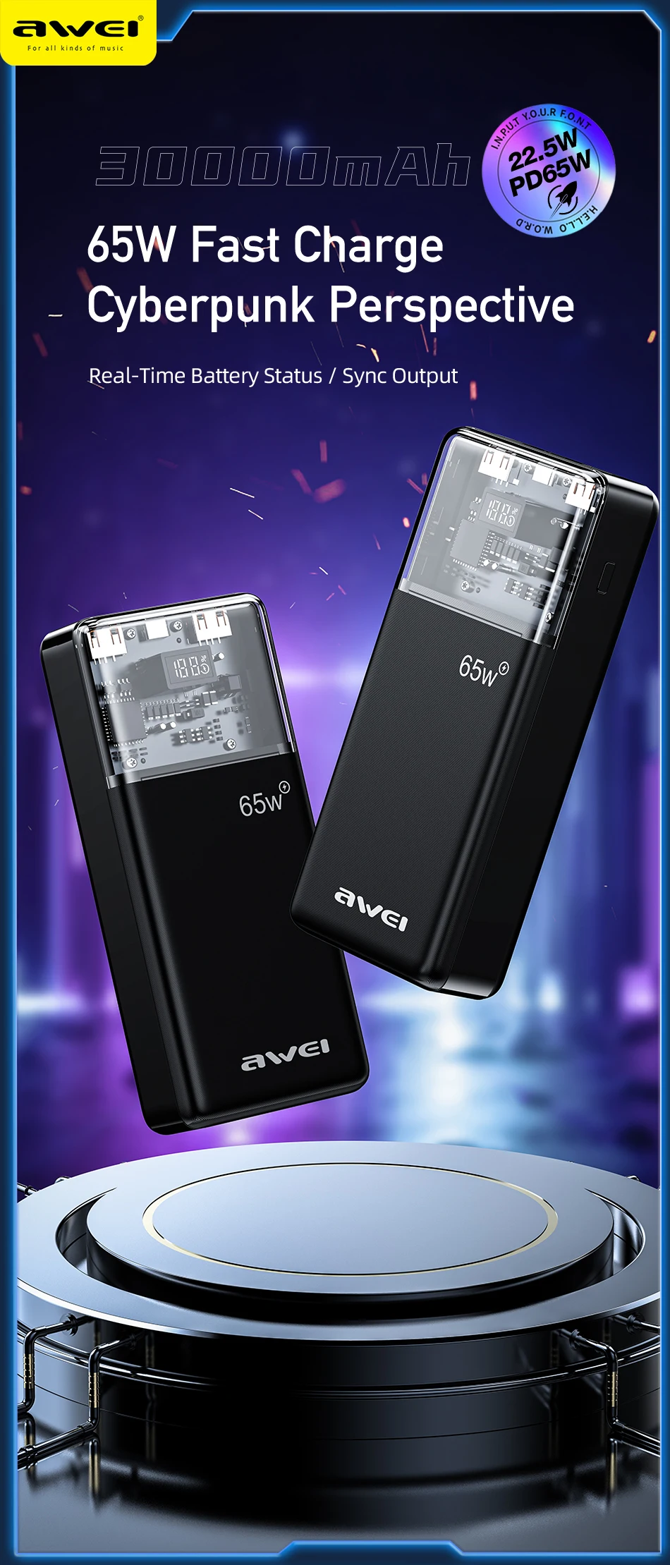 Awei P109K 30000mAh 65W Fast Charging Powerbank