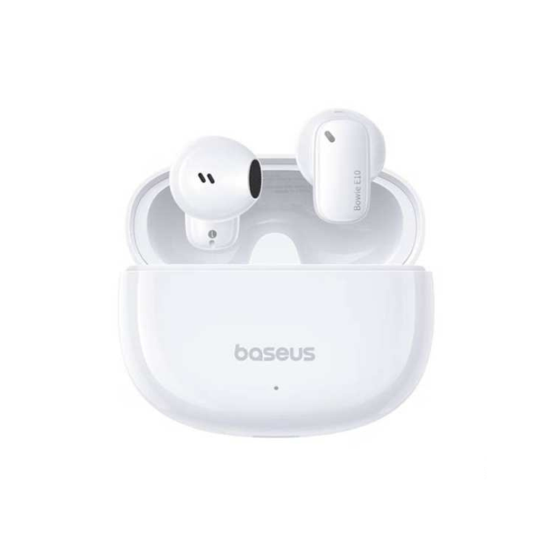 The Baseus E10 are true wireless Bluetooth earbuds with a semi-in-ear design, delivering comfortable fit, lightweight build, and balanced sound for music, calls, and casual use.