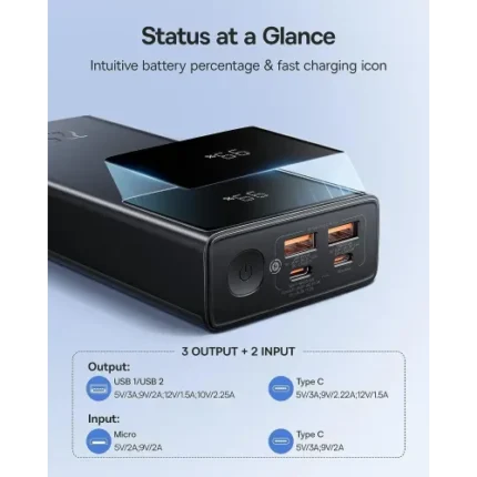 The Baseus PPXJ30 Star Lord Digital Display 22.5W 30000mAh Fast Charge Power Bank – a must-have gadget that combines convenience and efficiency in one powerful package. With its 20W Power Delivery (PD) fast charging capability, this power bank can supercharge your devices, such as the Apple iPhone 13, to 50% battery in just 30 minutes, ensuring you’re always connected and on the move. Boasting a colossal 30000mAh battery capacity, it’s the perfect companion for trips, outdoor adventures, or everyday use, ensuring your devices never run out of juice when you need them most. The Baseus PPXJ30 apart is its ability to charge up to three devices simultaneously, thanks to dual-input ports for rapid recharging and triple-output ports for multitasking. Stay in control with the built-in digital display that provides real-time battery status updates, making it easy to manage your charging needs effectively. Additionally, this power bank supports lightning-fast 22.5W high-voltage fast charging, making it compatible with Huawei devices, and it’s certified for various fast charging protocols, including QC, PD, SCP, FCP, AFC, and more. This power bank delivers the speed and reliability you crave. The Baseus PPXJ30 is a versatile and high-capacity portable charger designed to keep up with today’s fast-paced lifestyles. Its impressive features, including rapid charging, massive capacity, and compatibility with multiple devices, make it an indispensable companion for all your charging needs – whether you’re on the move or relaxing at home. Stay charged, stay connected, and stay ahead with the Baseus PPXJ30 Star Lord Power Bank.