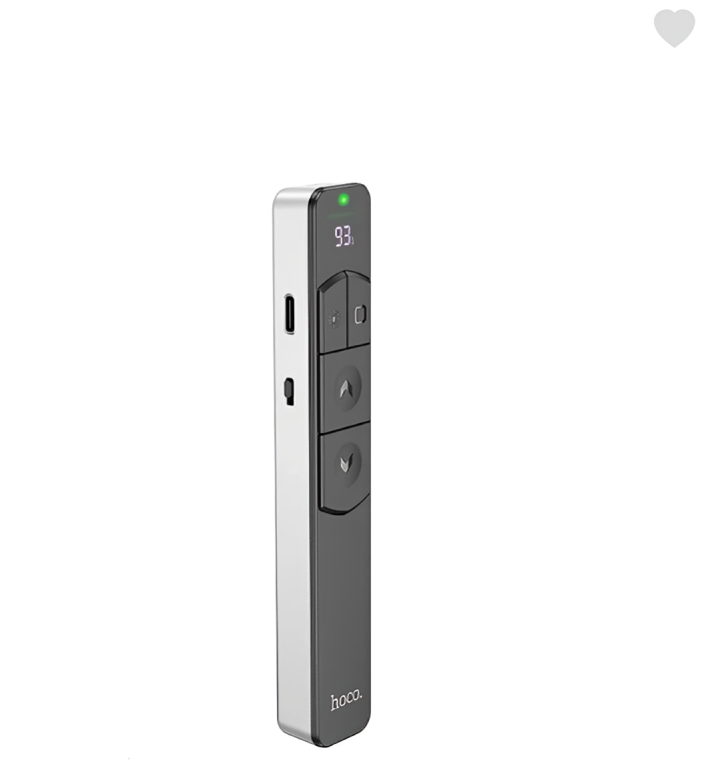 The Hoco GM202 is a sleek, “pen-style” wireless presenter crafted from durable PC and ABS materials. It utilizes a stable 2.4GHz wireless connection via a compact USB receiver that stores magnetically inside the device. Its standout feature is the integrated LED digital display, which provides real-time information on battery percentage, ensuring you are never caught off guard during an important speech.Order from T-Tech or visit our shop at Shop- (New)06, 1st Floor, Shah Amanat City Corporation Super Market, Chittagong, Bangladesh.