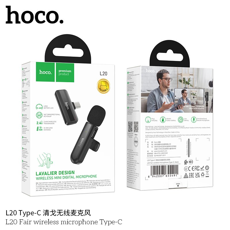 Hoco L20 Fair Lavalier Wireless Microphone Features: