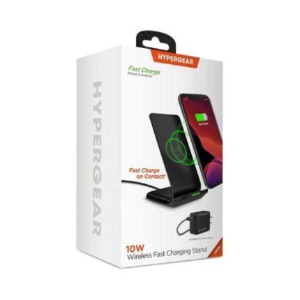 HyperGear 10W Wireless Fast Charging Stand V2.Fed up with constantly plugging and unplugging charging cables? The Wireless Fast Charging Stand allows you to charge your phone without hassling with cords simply by placing it against the upright pad. It conveniently charges on contact and delivers 2X the power of a standard wireless charger, cutting down your total charging time by at least an hour!