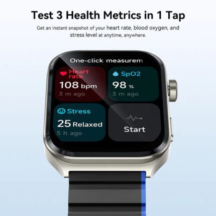 With the Kieslect Ks2 cutting edge health algorithms, you can quickly test and view your heart rate, blood oxygen, and stress levels in 30 seconds by 1 tap. Get an instant snapshot of your health and wellbeing anytime, anywhere.