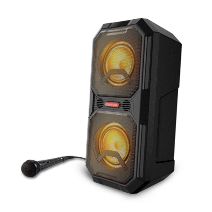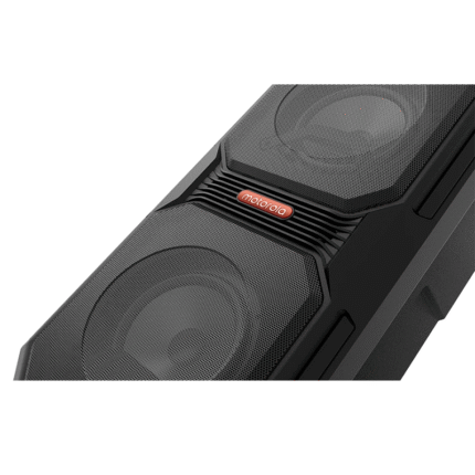 Sonic Maxx 820 is a market beating release for the large wireless party speaker by Motorola – Powerful integrated dual-subwoofers with thumping bass and high quality audio! Extreme sound to rival any other, integrated LED multi-colour party light system, water-resistance and built-in rechargeable battery allows enjoyment inside or out. The twin pack adds one more wireless speaker using “True Wireless link” technology for huge stereo sound.