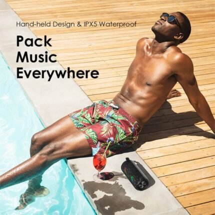 Hand-held design and IPX5 Waterproof Pack Music Everywhere