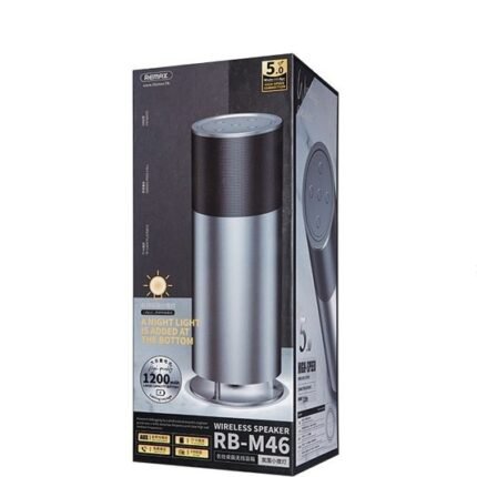 Remax RB-M46 Desktop Bluetooth Speaker comes with Subwoofer Bass. This Bluetooth speaker featured Wireless music playing and calling, Button Volume Control, Charging indication. The Remax RB-M46 featured with Transmission Distance: >10m, Frequency Response: 100-18kHz, Impedance: 4 Ω, Rated Power: 5W, Drive units: 52mm with 1200mAh Battery Capacity. This Bluetooth speaker has a Built-in rechargeable battery that can play music for 3-4 hours. It is also Supported for TF card reception, relative connection, and FM radio function. The Bluetooth speaker is capable of Audio cable playback, TF card playback, Hands-free all three white lights at the bottom, breathing effect, light brightness switching. This new Remax RB-M46 Bluetooth Speaker has no warranty.