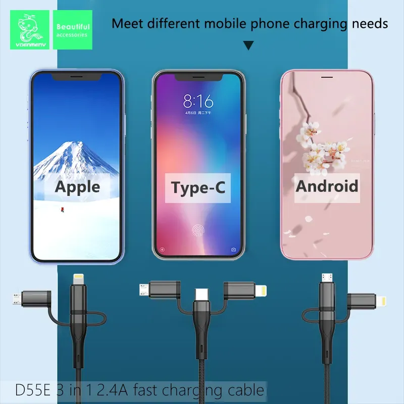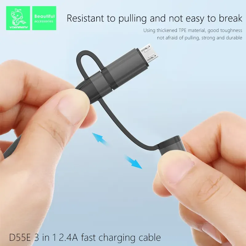 VDENMENV D55E 3-in-1 3.6 A Fast Charging Cable